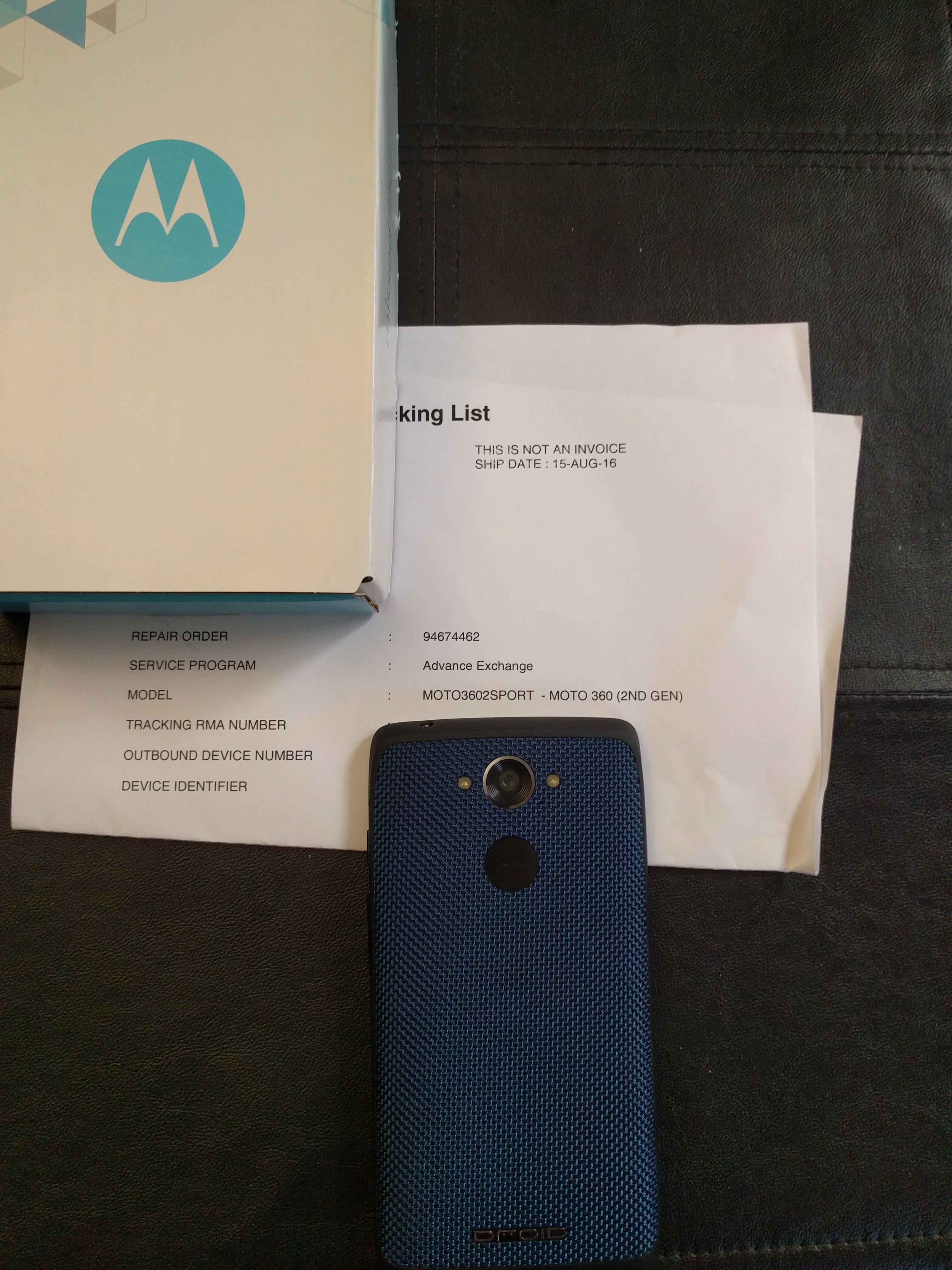 UPDATE (August 20th): After posting the previous update I also sent a very frank email to the Executive Customer Relations team. They had received the phone at this point and responded saying they decided to send me a new Moto 360 Sport via Saturday deliver, which I just received. Hopefully this marks the end of my particular issue. On to the broader issue, they said “We have completed a deep dive on your case and sent off coaching and feedback to ensure this does not occur in the future”, which is encouraging. I’ve responded noting that the technical system they use should really be evaluated, as the number of cascading failures just should not be possible (remember: the system allowed for the creation of an RMA when one doesn’t exist, showed one card as declined when my credit card company confirms it was not, put two holds for different amounts on a second card but then canceled the RMA while somehow still sending out a device, which then ended up being the incorrect device.  The billing issues are especially worrisome and it looks doubly bad when a tech company has this many technical failures). It is my hope based on their response that they will look into the failures and hopefully other people will not have to go through an experience similar to the one I have.